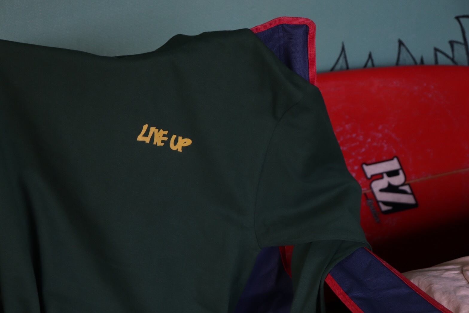 プロクラブのアースカラーに「liveup」のロゴ。